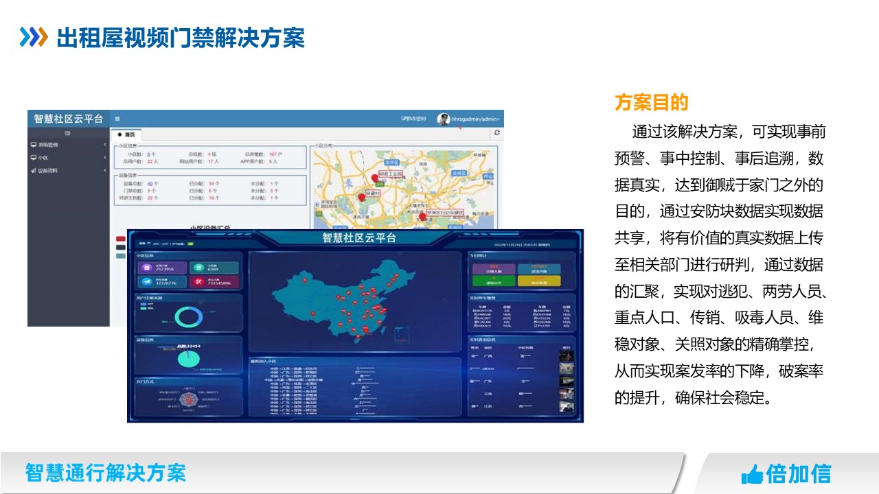 為落實公安信息化建設服務基層和實戰的要求,創新出租屋和流動人員的管理模式,切實加強社會治安綜合治理水平,進一步提升打擊防控能力,在小區、城中村、出租屋等場所推廣建設具有門禁、視頻監控和報警等功能的出租屋視頻門禁報警系統。